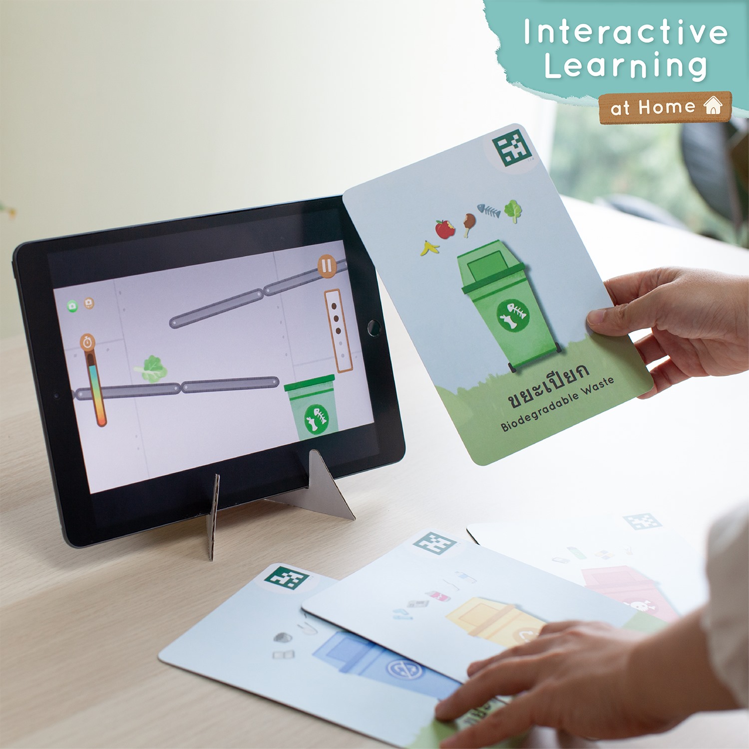 เรียนและเล่นได้ที่บ้าน เพิ่มระยะห่างจากหน้าจอด้วยแฟลชการ์ดอิจฉริยะ เล่นคู่กับเกมใน Application เนื้อหาสอดคล้องกับการเรียนการสอนอนุบาล