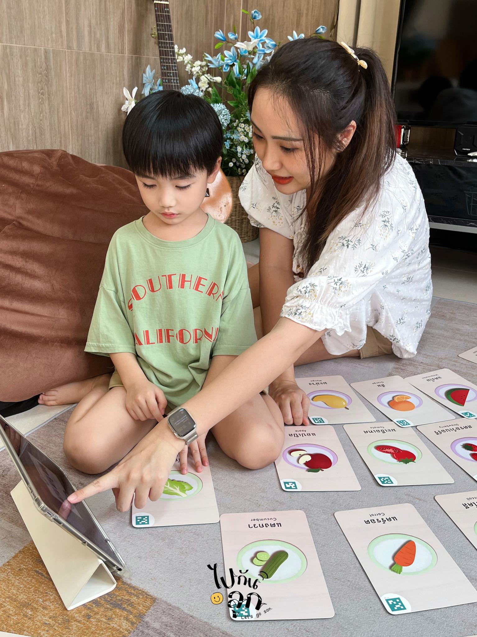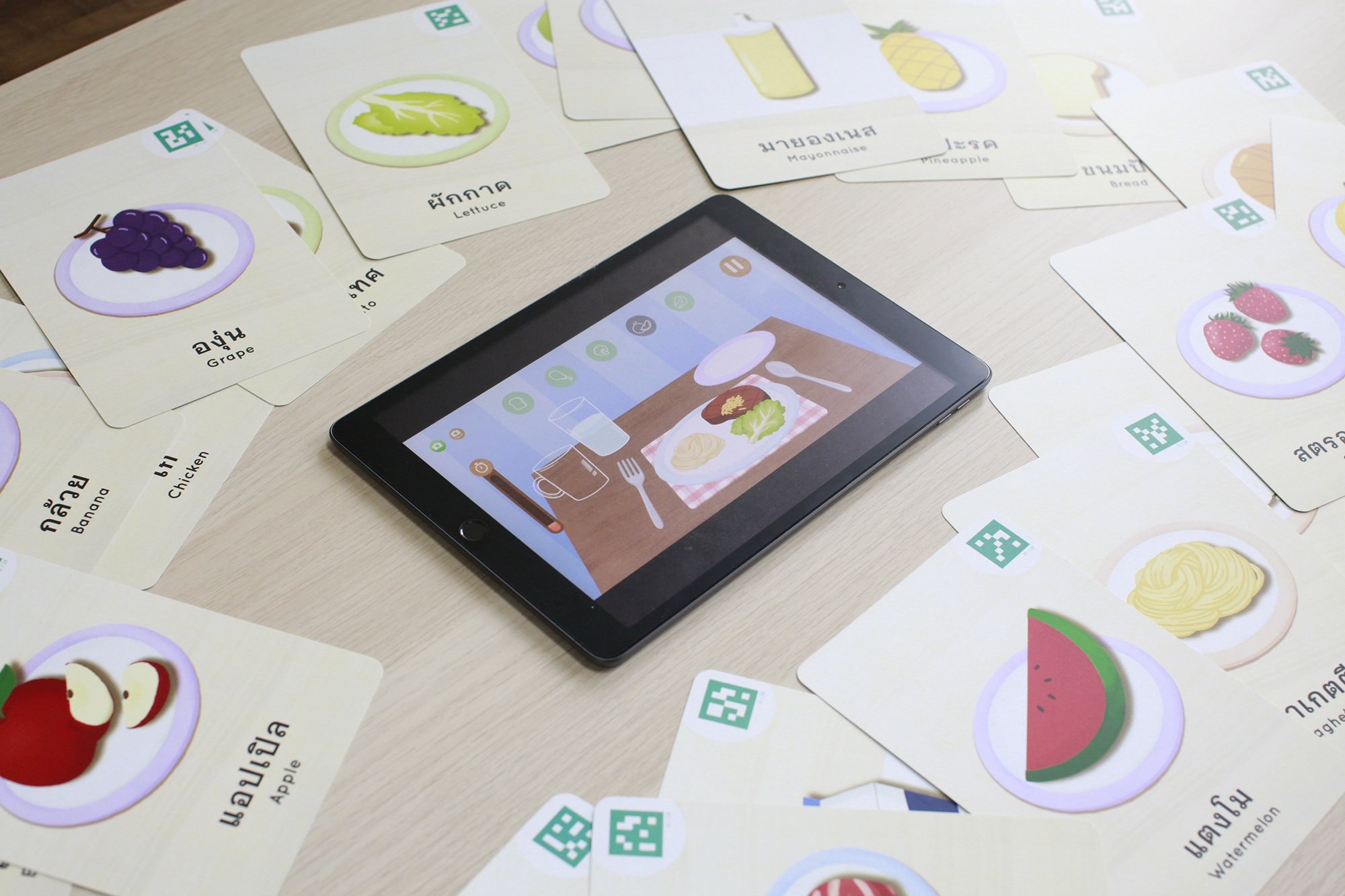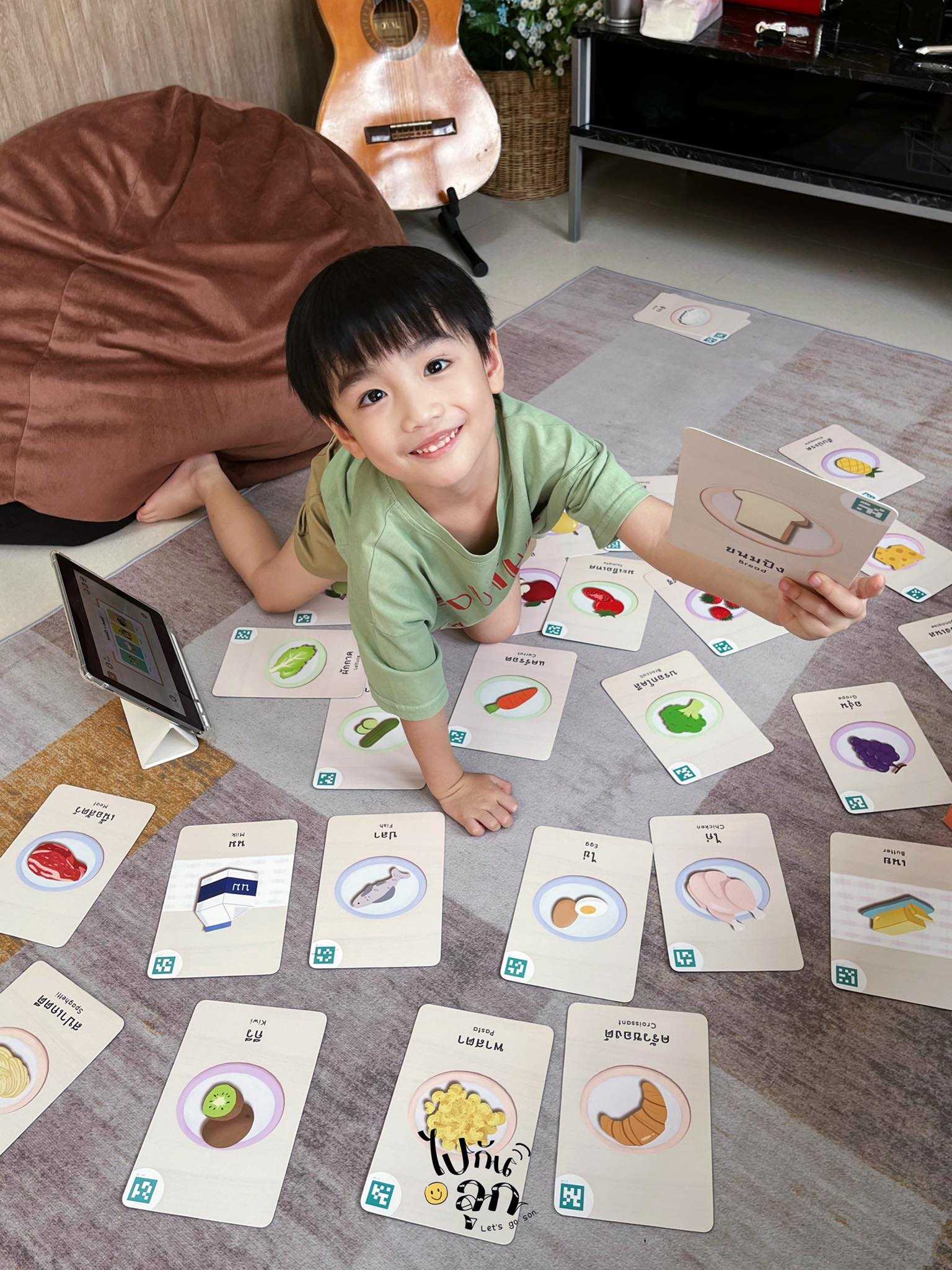 Flashcard ของเรา มาคู่กับ Application เกมการศึกษา เมื่อใช้คู่กันเด็กๆ จะได้ฟังเสียงคำศัพท์ และเรียนรู้อย่างสนุกผ่านเกมในแอพแบบ Game-based Learning ซึ่งเล่นง่ายๆ ด้วยการสแกนการ์ดกับแท็ปเล็ต