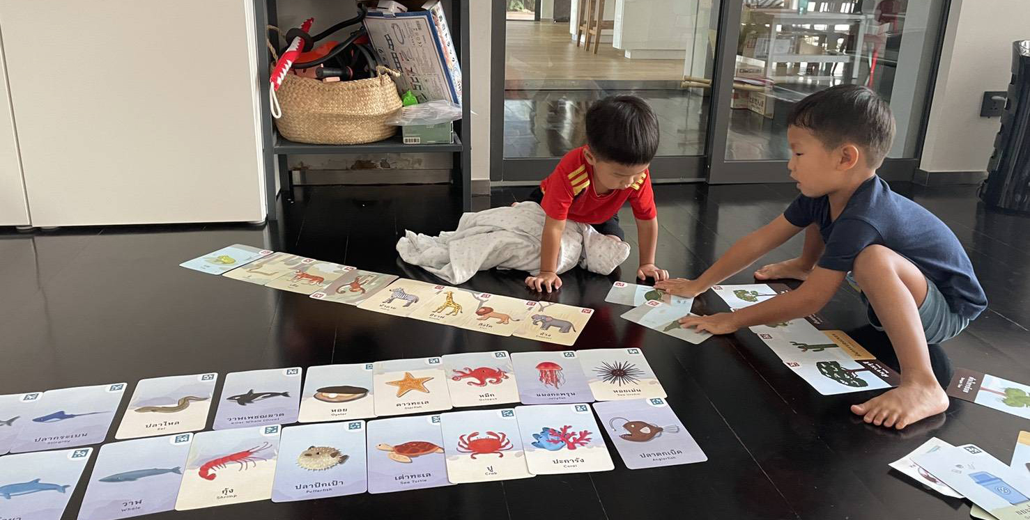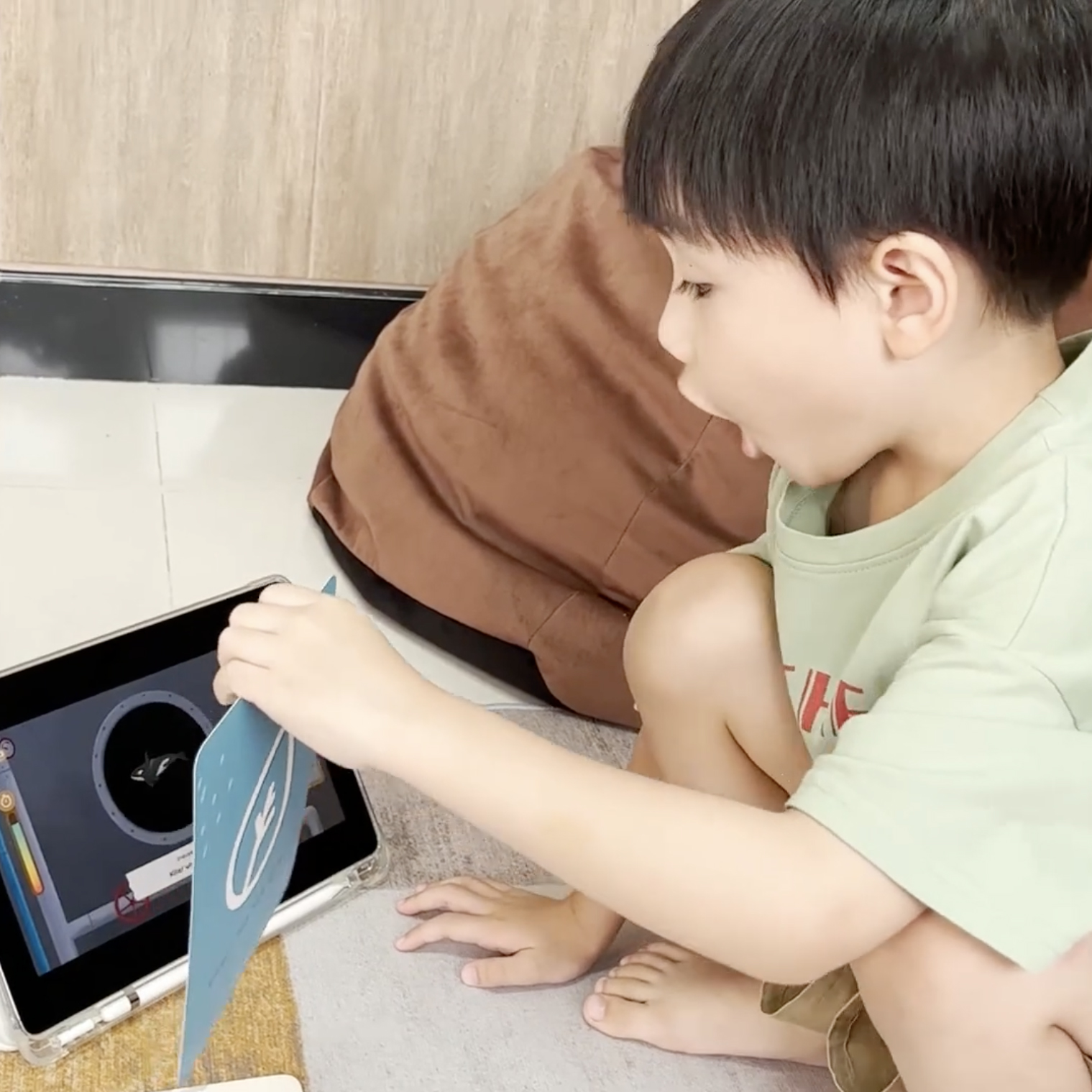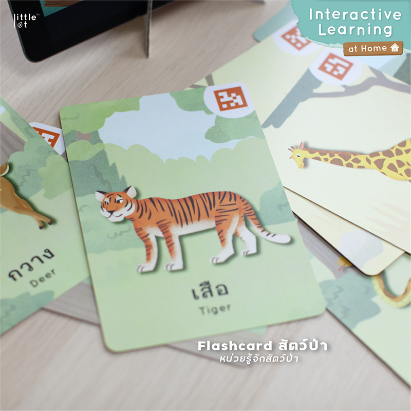 Flashcard ของเรา มาคู่กับ Application เกมการศึกษา เมื่อใช้คู่กันเด็กๆ จะได้ฟังเสียงคำศัพท์ และเรียนรู้อย่างสนุกผ่านเกมในแอพแบบ Game-based Learning ซึ่งเล่นง่ายๆ ด้วยการสแกนการ์ดกับแท็ปเล็ต