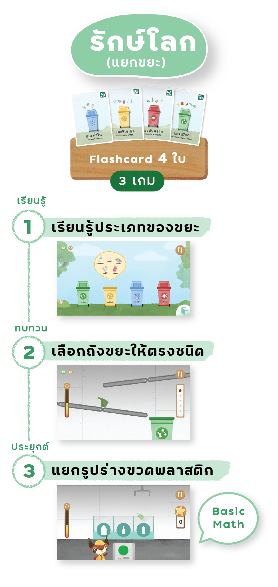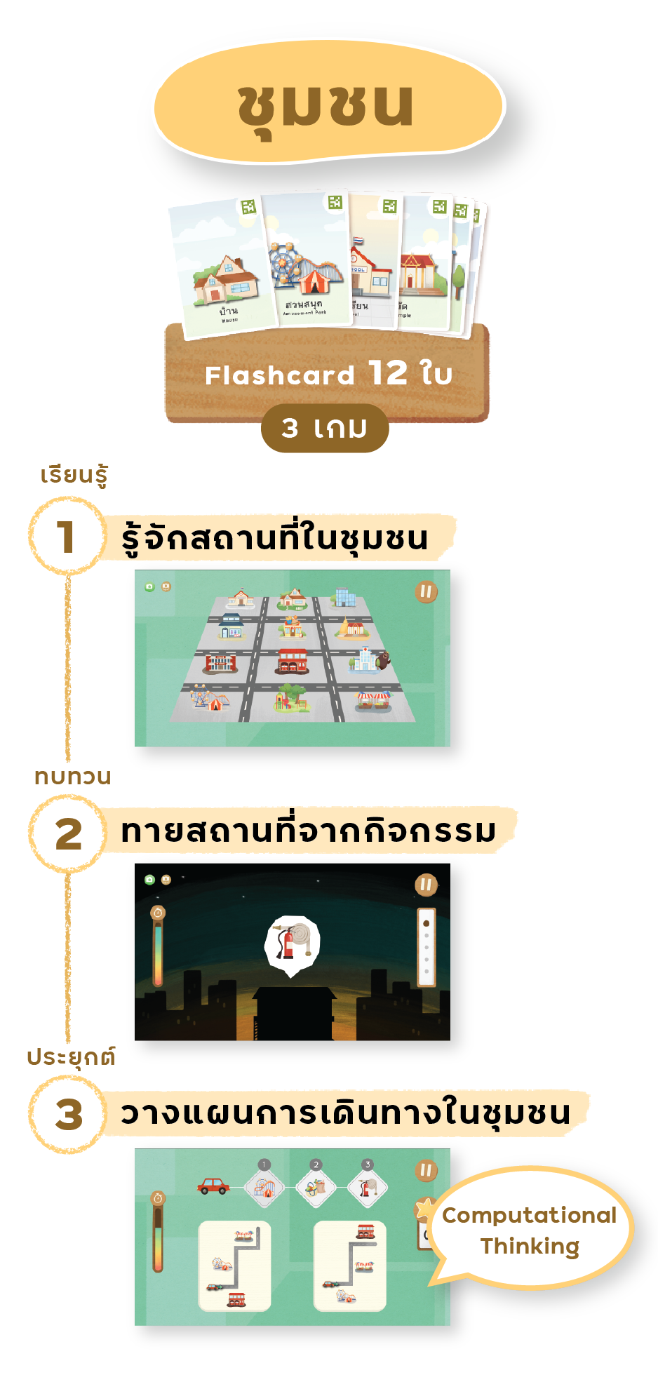 เข้าใจโดยไม่ต้องท่องจำ ผ่านการเล่นเกมแต่ละหน่วยที่ถูกเรียบเรียงเป็นขั้นตอน "เรียนรู้ ทบทวน และประยุกต์"