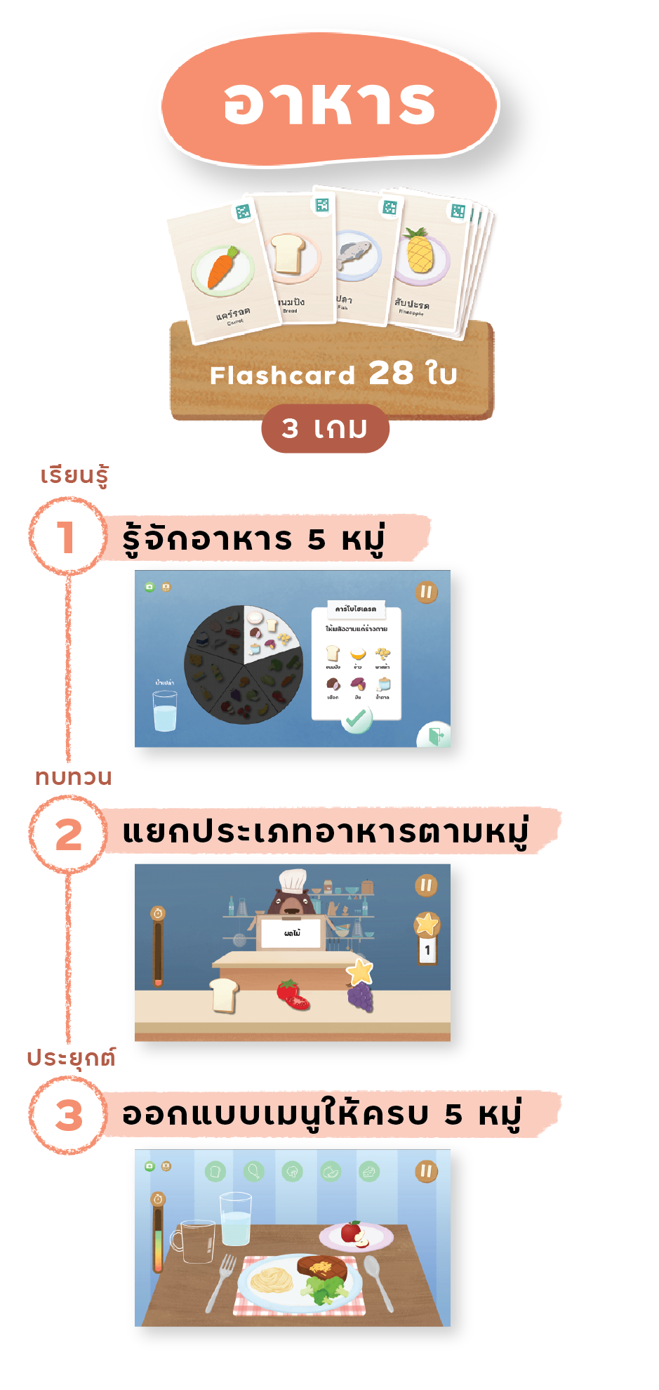 และเนื่องจากเป็นหัวข้อจากหน่วยการเรียนรู้ในระดับอนุบาล Flashcard และเกมของเราจึงเป็นตัวช่วยคุณพ่อคุณแม่ในการฝึกทบทวนเด็กๆ ได้อย่างดี