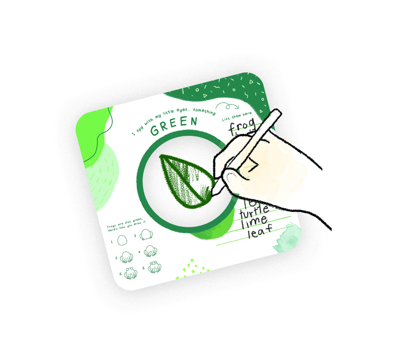 นอกจากเขียนแล้วยังสามารถใช้การ์ดบอร์ดเป็นกรอบเพื่อวาดรูปสิ่งที่ได้เห็นและสัมผัส เป็นการเชื่อมโยงและสะท้อนความเข้าใจทั้งตัวอักษรและภาพ