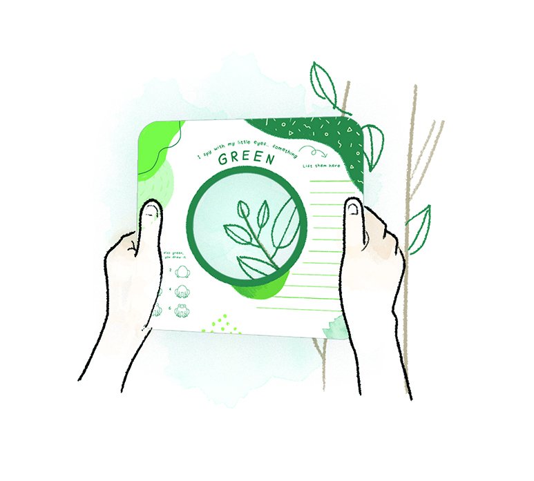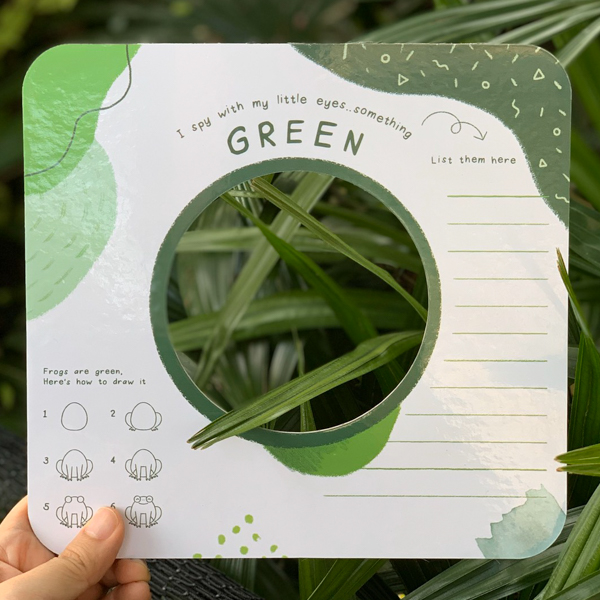 Find something green, find something round, find something small! You'll be surprised at what you find from the vocabularies on the viewfinder.